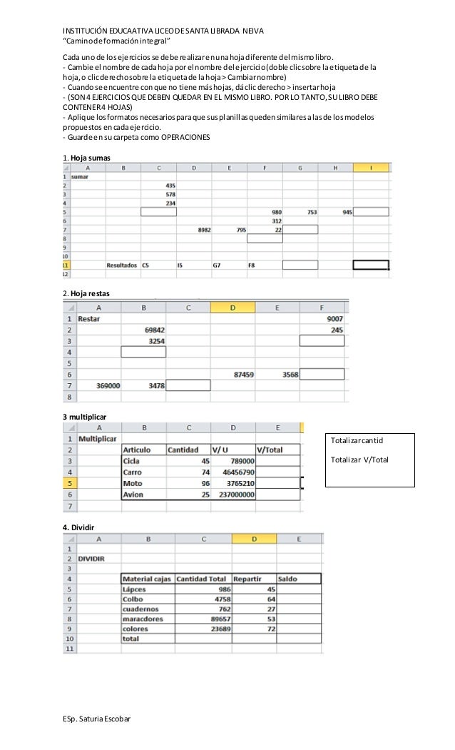 Esta semana se revisan los ejercicios de operaciones en Excel